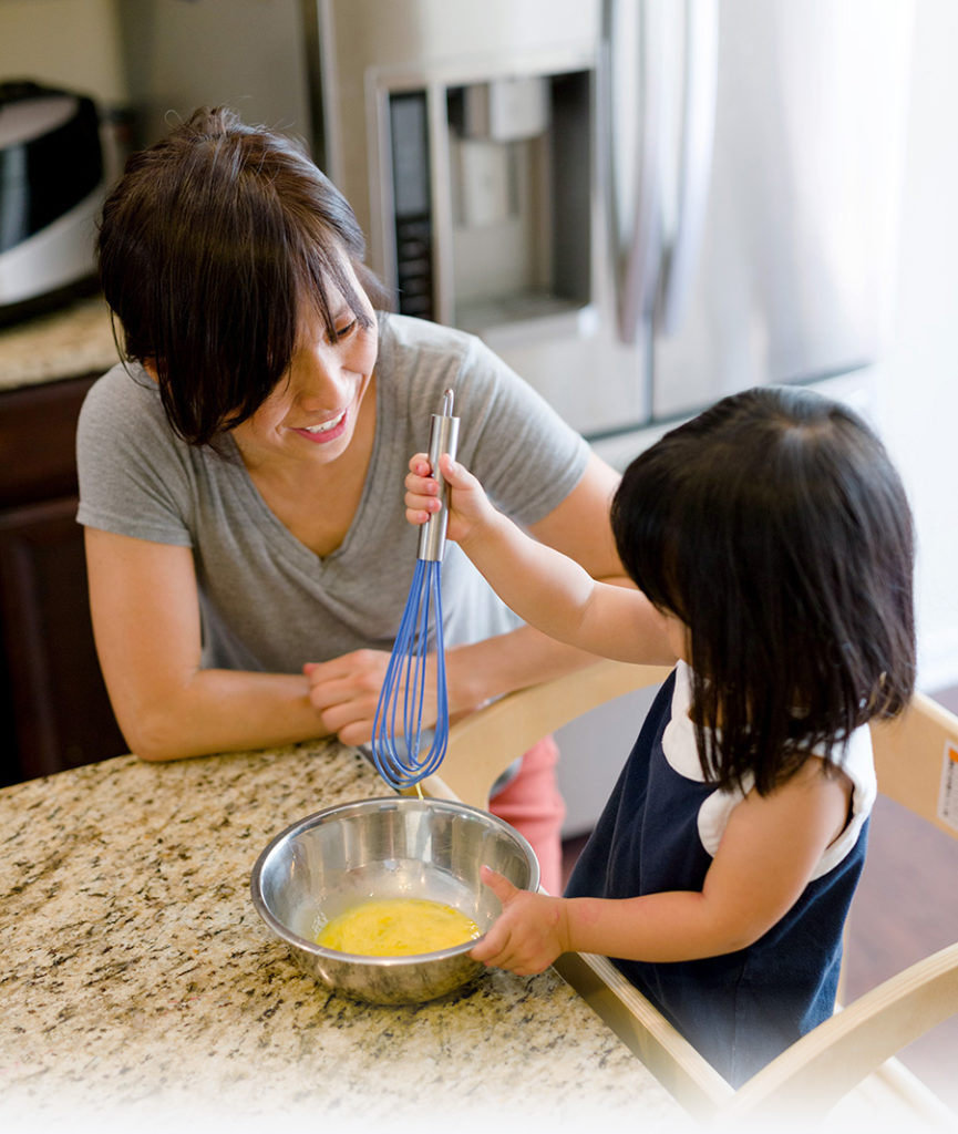 We have set up our kitchen so Emily can operate independently. For example, if she wants a snack, she can get everything all by herself and set it up.