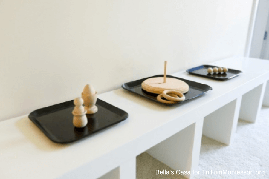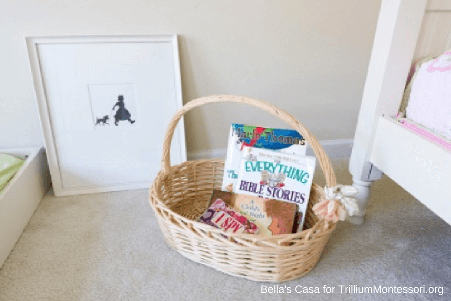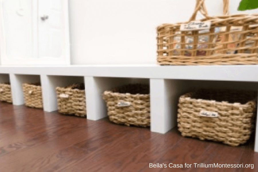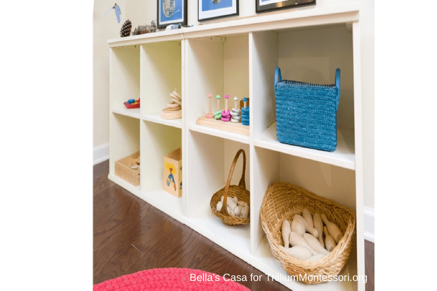 Too many things can be overwhelming. Youâll notice that I keep most items stored away in the closet, and offer just a few at a time on a rotating basis. Here you can see baskets and containers for specific toys, and everything has a space.