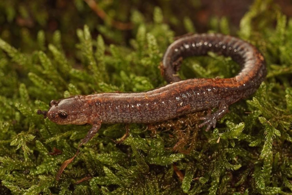 The Eastern Red-Backed Salamander is a small, slender amphibian with a distinctive reddish stripe running down its back. It is well adapted to the moist, cool environments of temperate forests, where it hides under rocks and logs to avoid desiccation and predators.