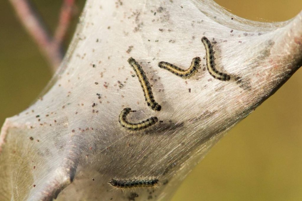 The Tent Caterpillar Moth is a small, brown moth whose larvae are known for creating silken tents in the branches of trees (pictured above). To make the most of the forest’s seasonal patterns, these caterpillars sync their development with the emergence of new spring leaves, the caterpillar’s main food.