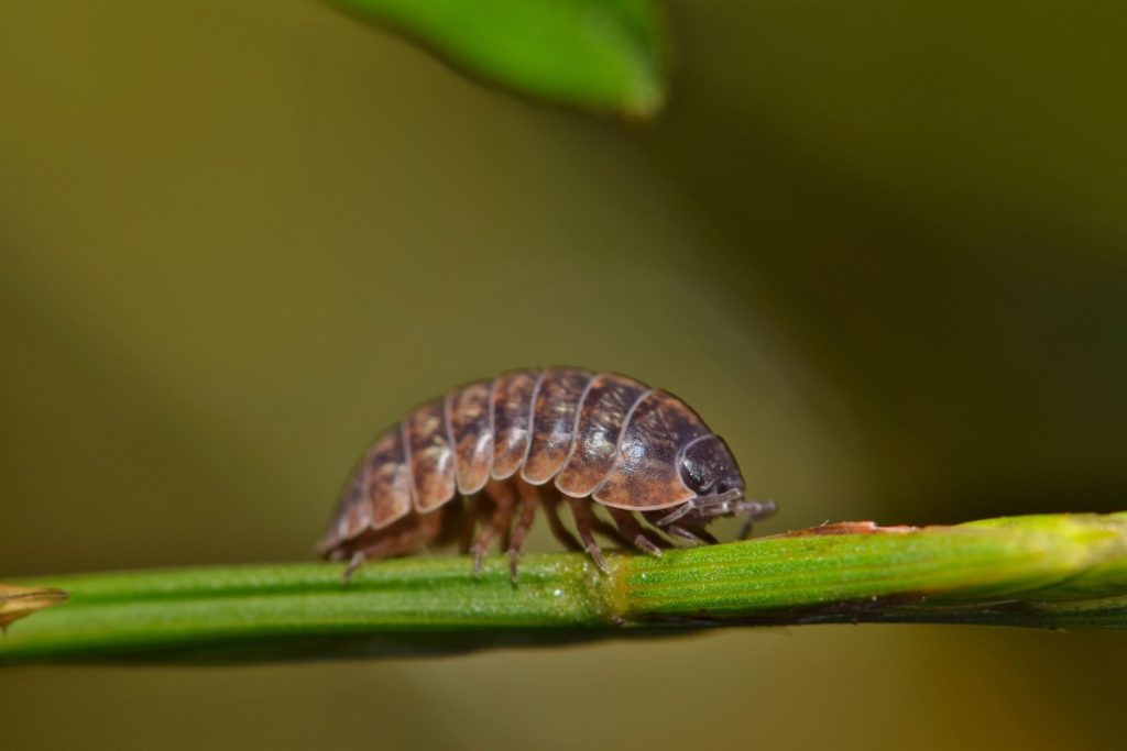 Pillbugs are small, grey crustaceans with segmented, armored exoskeletons and the ability to roll into a ball to protect themselves from predators. By feeding on decomposing plant matter, pillbugs help to recycle nutrients in the temperate forest ecosystem.